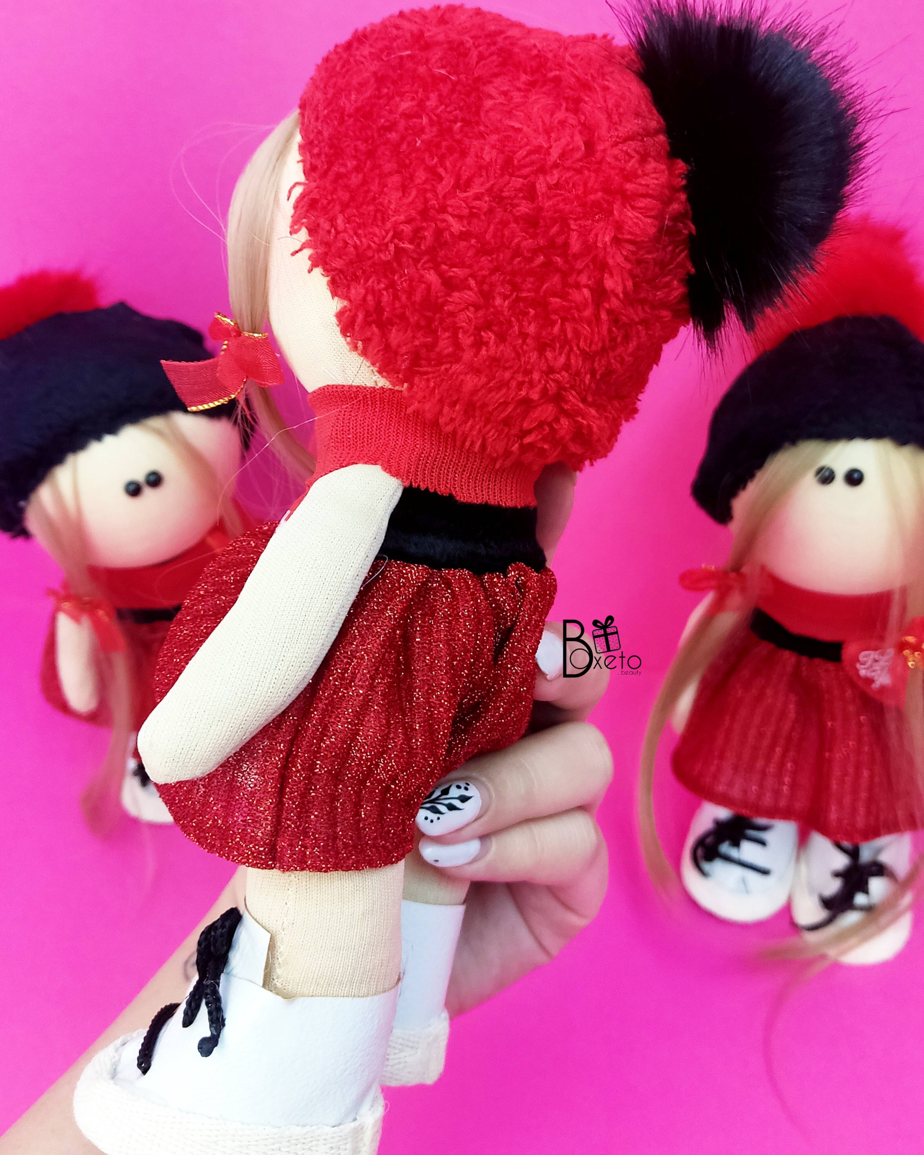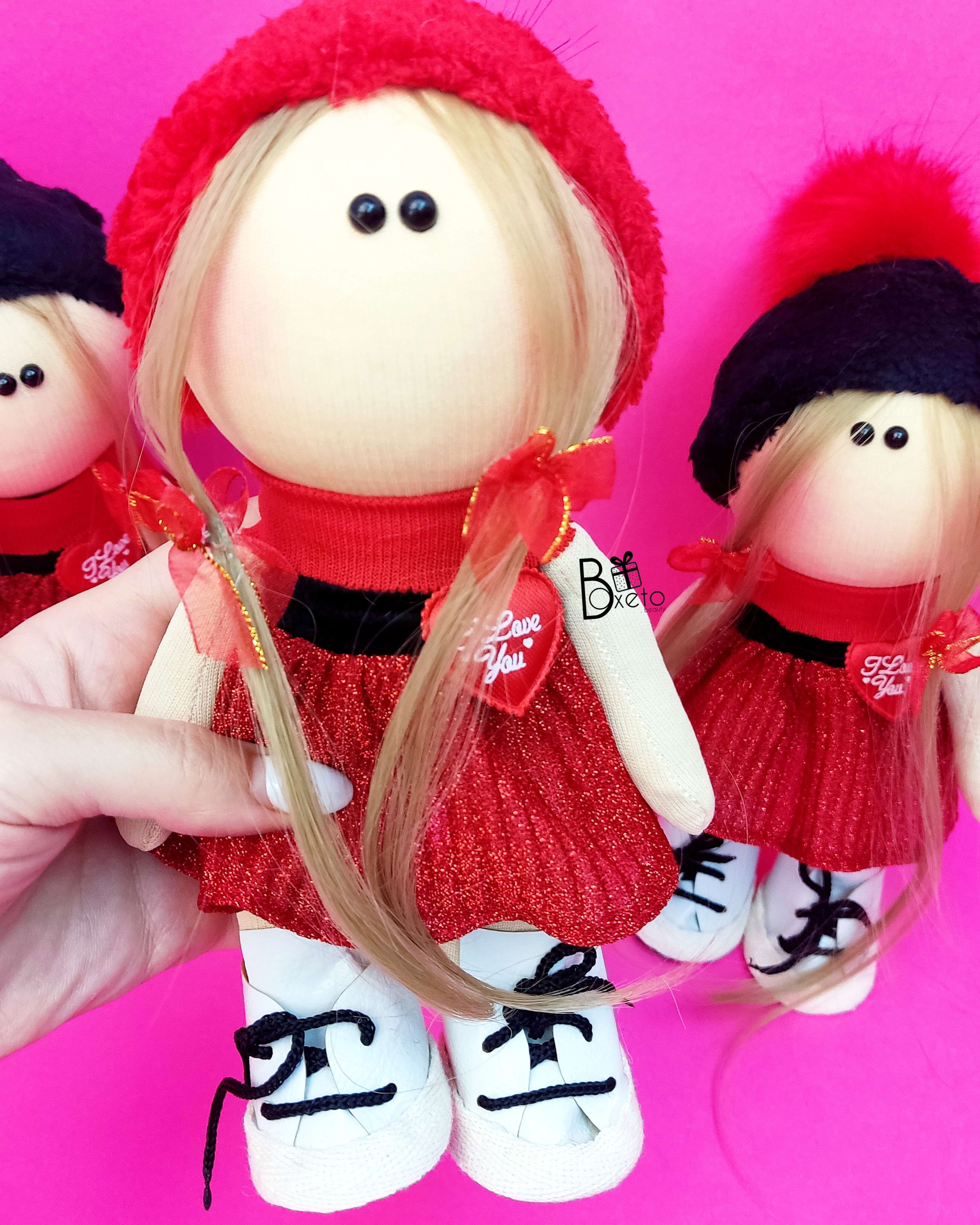 عروسک دختر پارچه ای قرمز مشکی مخصوص ولنتاین